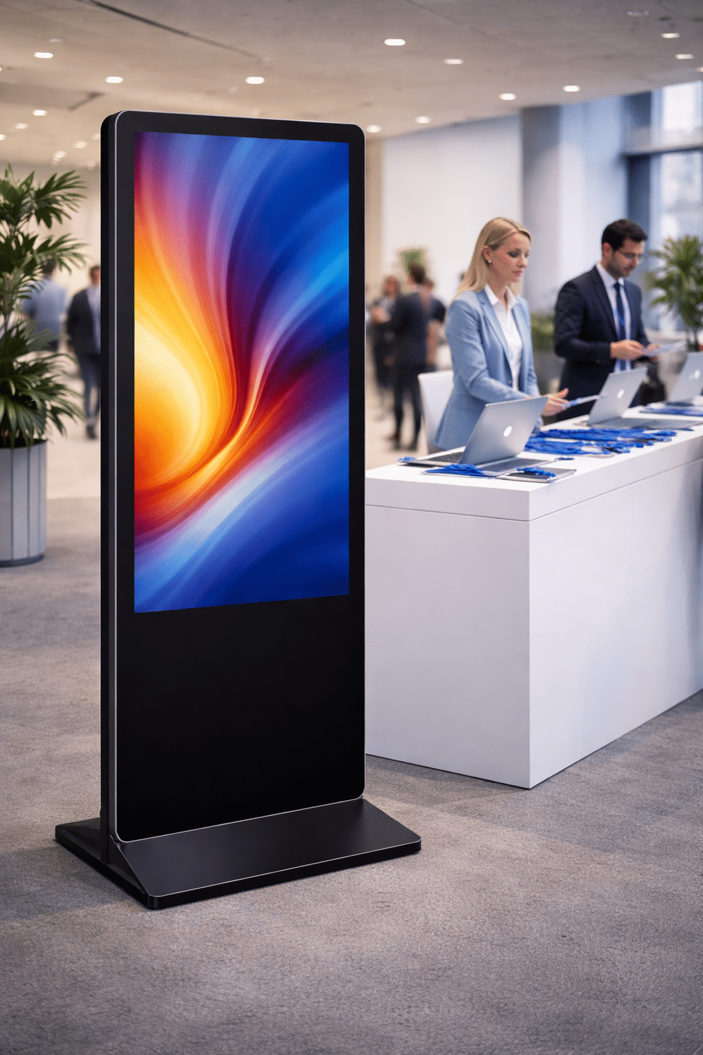 The 55″ Digital Signage Kiosk is a modern, vertical display solution suitable for high-traffic event environments. It enables real-time content updates and supports both static and dynamic media formats.