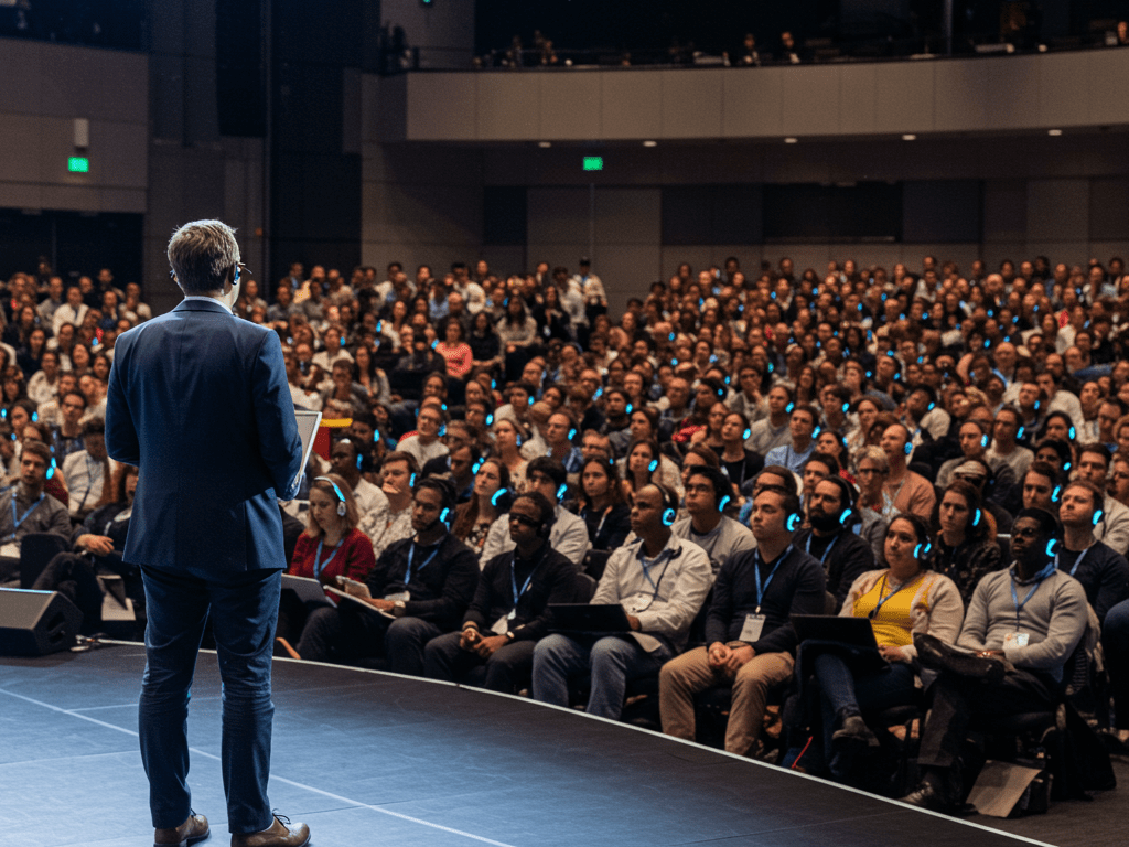 Whether you’re running multilingual sessions, multiple seminars in one space, or presentations in a busy expo hall — we deliver crystal-clear sound directly to every participant, without interference.